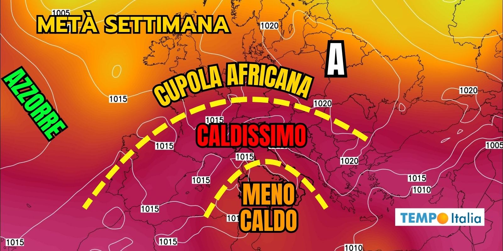 Il promontorio subtropicale, gonfio di umidità e calore, non riesce più a sostenere la colonna d’aria nei suoi strati superiori. L’aria torrida, più leggera, accelera la propria ascesa, si espande e si raffredda, creando una depressione in quota sul Basso Mediterraneo, che rappresenta l’innesco per celle convettive ad evoluzione diurna.