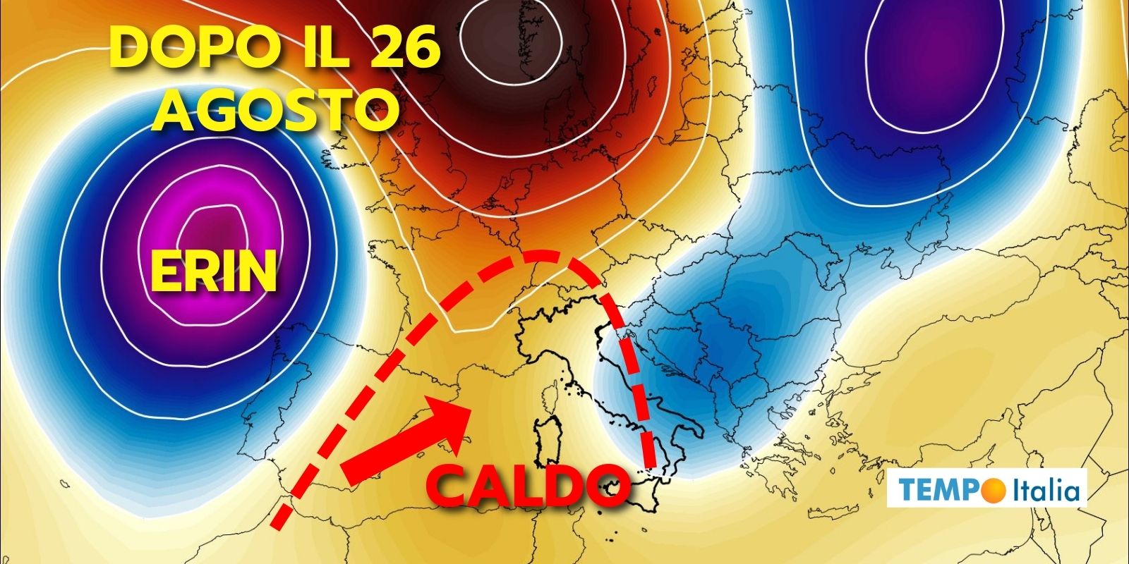 (TEMPOITALIA.IT) La prossima settimana l’Italia potrebbe tornare sotto un’ondata di caldo intenso. I resti di Erin, primo uragano atlantico del 2025, verranno agganciati dal flusso occidentale e spinti verso l’Europa. Questo movimento, pur senza portare il ciclone direttamente sul nostro Paese, dovrebbe rinforzare un promontorio subtropicale capace di far risalire aria molto calda fin sul Mediterraneo.
