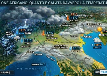 Sul Settentrione già da oggi si registrano piogge intense e fenomeni temporaleschi, mentre al Sud e sulle isole maggiori l’aria calda di origine subtropicale sta facendo salire le temperature su valori tipici delle più forti ondate di calore estive, con massime prossime ai 40 °C.