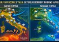 In Adriatico particolarmente colpita potrebbe essere la Puglia, oltre che parte del Molise. Fenomeni temporaleschi anche in Calabria e in Basilicata. Situazione meteorologica in peggioramento durante le ore pomeridiane a causa dell’instabilità atmosferica favorita dal calore proveniente dal terreno, quindi temporali soprattutto nelle zone interne, ma comunque ancora temporali sul mare. Moltissimi temporali di forte intensità sul settore tirrenico della Sicilia e quello orientale – insomma si genererà una situazione meteo piuttosto insolita per il periodo.
