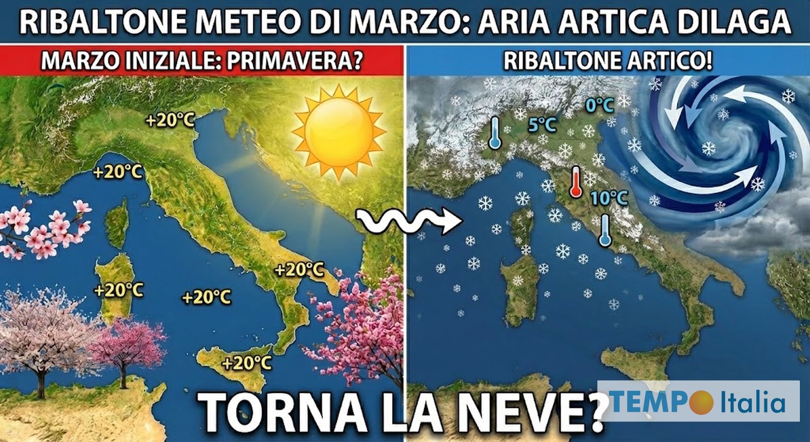 (TEMPOITALIA.IT) Il mese di Marzo 2026 si prepara a un clamoroso ritorno delle condizioni invernali, un evento che mette profondamente in discussione la stabilità vissuta nelle ultime settimane. Sebbene il calendario ci collochi ormai nel pieno della Primavera meteorologica, con giornate che godono di molte più ore di luce e di una radiazione solare ben più incisiva rispetto a quella di Dicembre, l’efficacia delle ondate di freddo non sarà paragonabile ai momenti più crudi della stagione passata, tuttavia lo sbalzo termico che si profila all’orizzonte è davvero considerevole. Dopo l’improvviso e prepotente arrivo dell’Anticiclone Africano, ci troviamo di fronte a una configurazione atmosferica che scavalca le consuete regole del periodo, alimentando il disagio per mutamenti meteorologici che oggi appaiono sensibilmente accentuati dai Cambiamenti Climatici, ormai evidenti agli occhi di tutti.
