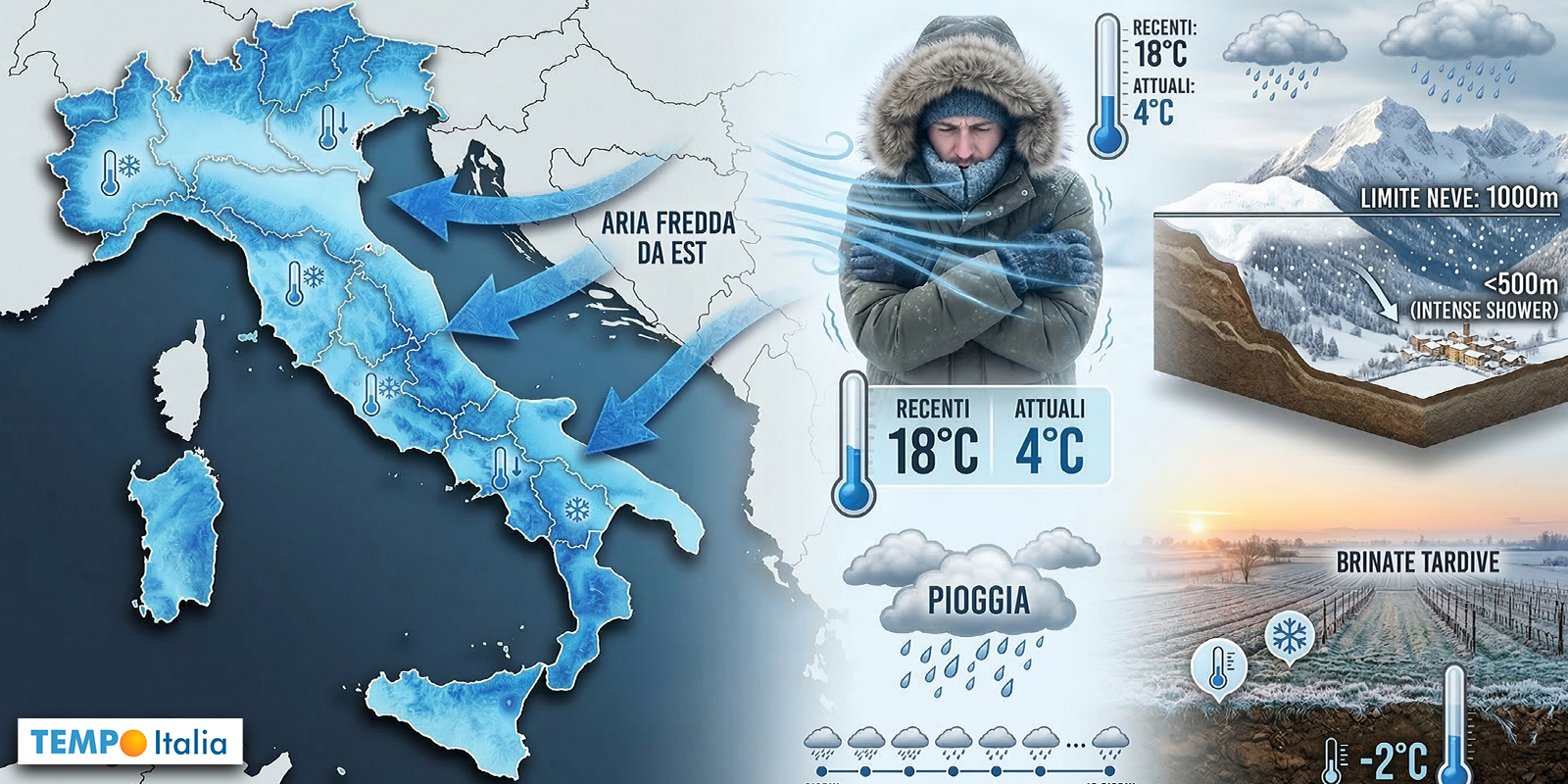 Neve a quote basse e crollo termico repentino