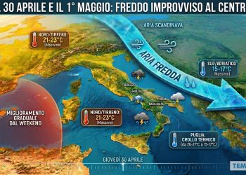 Per fortuna la massa d’aria fredda non entrerà con decisione sulla Penisola. Secondo le elaborazioni dei principali modelli meteorologici, come ECMWF, GFS, UKMO e ICON, il picco del freddo attorno al 1° Maggio si concentrerà ad est, lasciando l’Italia in una posizione di confine: il settore adriatico e la Sicilia vedranno temperature nella media o di poco sotto, mentre le regioni centro-occidentali e il Nord manterranno valori sostanzialmente nella norma o leggermente sopra, favorite dalla prevalenza di tempo soleggiato.