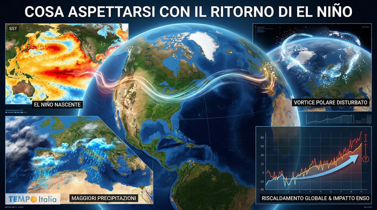 Con La Niña in dissolvimento e El Niño in fase nascente, il segnale climatico più atteso riguarda soprattutto la prossima stagione fredda. Un El Niño forte, come quello atteso, tende a produrre inverni più perturbati nel Mediterraneo centrale, con maggiori precipitazioni e un Vortice Polare più soggetto a disturbi stratoferici. Tuttavia, la variabilità interna dell’atmosfera resta dominante e nessun indice climatico, per quanto robusto, consente previsioni certe a scala stagionale. I modelli indicano inoltre un possibile rafforzamento della teleconnessione ENSO-Europa con il progredire del Riscaldamento Globale, anche se le incertezze su questo punto restano considerevoli.