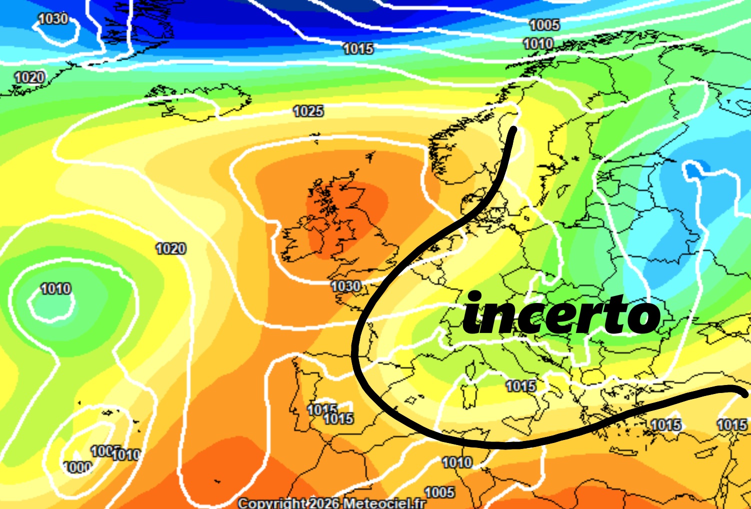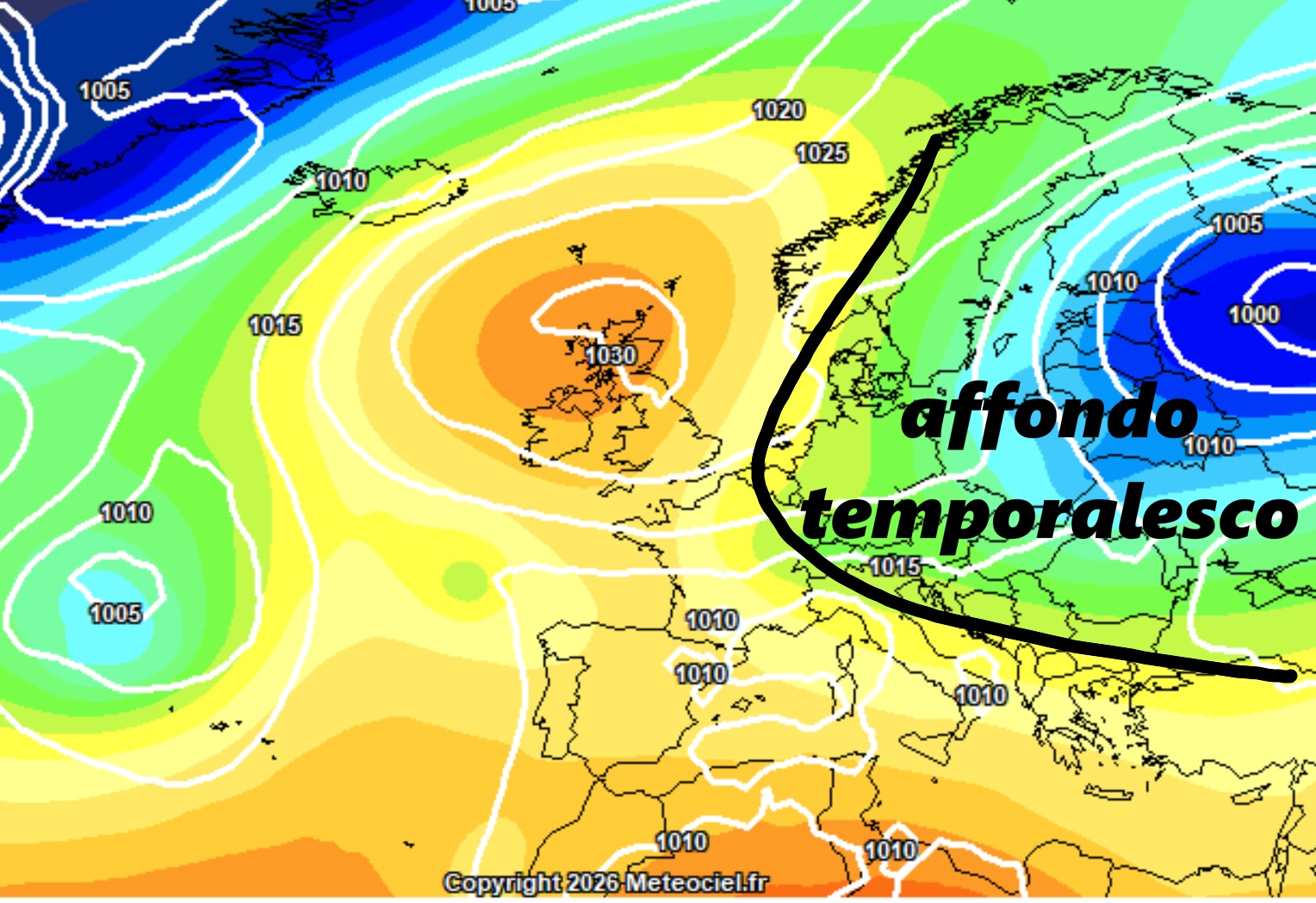 Ci sarà anche un’anomala posizione dell’alta pressione. Non a caso, le mappe indicano un netto sbilanciamento dell’anticiclone verso le latitudini del Nord Europa, spingendosi fino a ridosso del Mar di Norvegia. Ancora una volta un pattern meteorologico piuttosto atipico, non caratteristico della Primavera. Questa configurazione lascerebbe campo libero a una potenziale interazione tra le masse d’aria fredda continentale, in rientro retrogrado dalla Russia, e il profondo vortice ciclonico ormai posizionato nel cuore dei nostri mari. Sarebbe stato qualcosa di notevole se fossimo stati nel pieno dell’inverno…