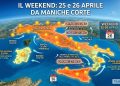 Osservando le proiezioni relative alla sommatoria delle precipitazioni, la distribuzione geografica dei fenomeni risulta molto chiara e le mappe parlano da sole. Durante le 24 ore del Primo Maggio, il maltempo colpirà duramente e principalmente le regioni del Nord e gran parte del Centro Italia. È ancora presto per dire se avremo le classiche piogge di forte maltempo oppure un periodo di instabilità latente. Ricordiamo che, anche se potrebbe non fare piacere a molti, queste eventuali precipitazioni costituirebbero un’autentica e fondamentale boccata d’ossigeno per la nostra agricoltura, rimpinguando le riserve idriche.