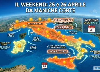 Il Sud Italia, in questa primissima fase del peggioramento, risulterà invece un po’ più ai margini, coinvolto solamente da qualche annuvolamento o da fenomeni di breve durata. La tregua per il Meridione sarà però effimera: nei giorni immediatamente successivi, forse già dal 3 o dal 4 Maggio, potrebbe arrivare un po’ di pioggia anche per le regioni meridionali. Continuate a seguire i nostri aggiornamenti meteo.