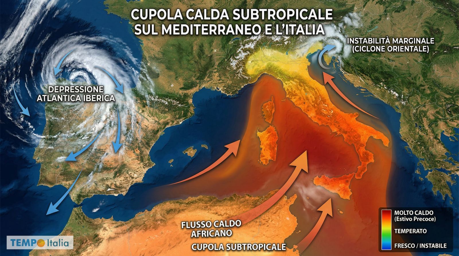 (TEMPOITALIA.IT) Questa stagione sembra quasi godere nel mettere a dura prova armadi e aspettative. Dopo le giornate quasi estive e la brusca frenata portata dal vortice afro-mediterraneo, il mese prosegue nel suo balletto continuo tra schiarite e temporali, tra temperature che salgono e correnti fresche che le riportano giù. Un’instabilità a macchia di leopardo che caratterizzerà ancora la parte centrale del mese, in un contesto di spiccata variabilità termica che incide su tutto, dal guardaroba alla salute, con sbalzi che il nostro organismo fatica ad assorbire.